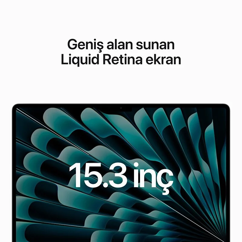 Sadece estetik değil, çevre dostu tasarımıyla da dikkat çeken yeni MacBook Air, %50’den fazla geri dönüştürülmüş malzeme kullanılarak üretilmiş. İncecik yapısı ve hafifliğiyle çantanıza kolayca sığarken, her yere taşınabilecek kadar portatif bir formda sunuluyor. Üstelik dört farklı renk seçeneği ile tarzınızı da yansıtmanıza olanak sağlıyor: Gök Mavisi, Gümüş, Yıldız Işığı ve Gece Yarısı.